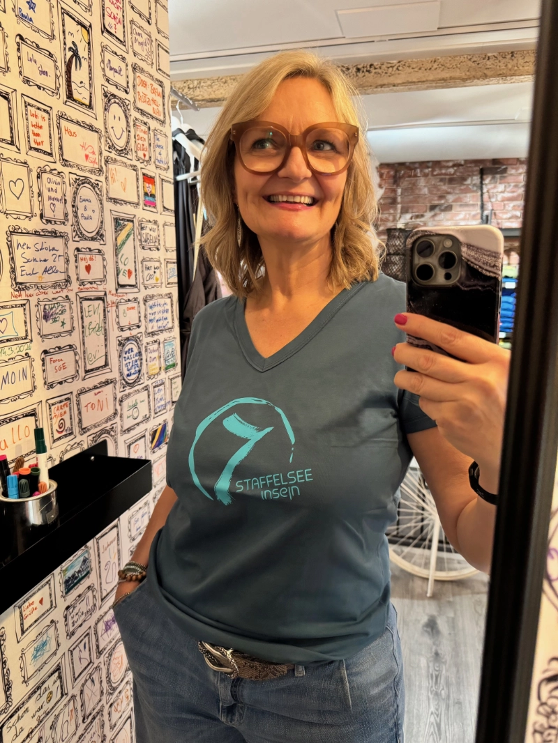 Durch dieses wundervolle Fleckchen Erde im blauen Land inspiriert, am Staffelsee entworfen, in Europa produziert und im Handsiebdruck Verfahren in Deutschland bedruckt…das ist meine Eigenmarke, von der ich pro entworfenem & produziertem Teil einen Teilbetrag an das Frauenhaus in Murnau spende…Geben ist schöner als Nehmen…