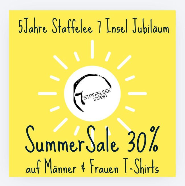 WIR FEIERN 5 JAHRE STAFFELSEE 7 INSELN MIT EINEN SUMMER SALE MIT 30% AUF ALLE STAFFELSEE T-SHIRTS